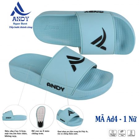Trong đó, dép quai ngang nữ AD04-2 là một trong những sản phẩm được nhiều chị em yêu thích. Thiết kế theo hướng truyền thống với quai ngang đơn giản được in logo cách điệu của Andy Store. Phần quai mềm mại nên giúp cho người dùng cảm thấy thoải mái, không quá chật chội.